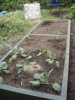 Planted up with Minicole cabbages, Bolognese courgettes, calendula